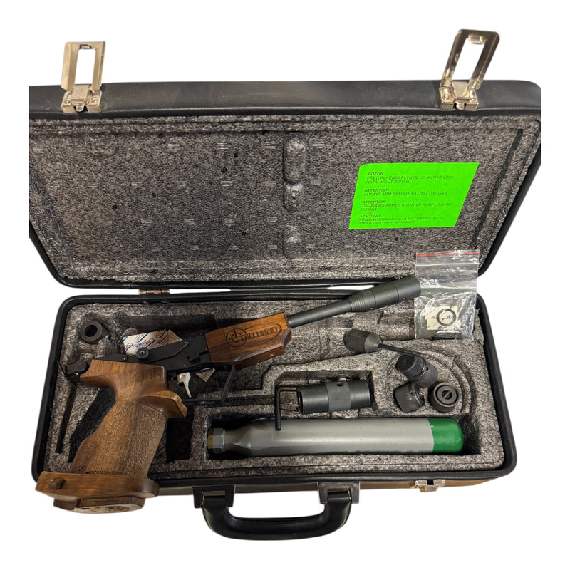 Great condition, shows little to no use/wear. Includes original case, accesories, spare parts, tools, CO2 bottle and manual. Also includes custom made black leather holster.